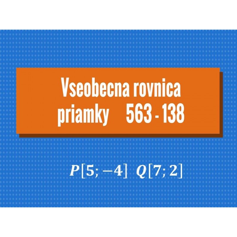 Matematický príklad na vypočítanie všeobecnej rovnice priamky je z " Maturita z matematiky" príprava na prijímacie skúšky na vysokú školu RNDr. Mário Boroš.