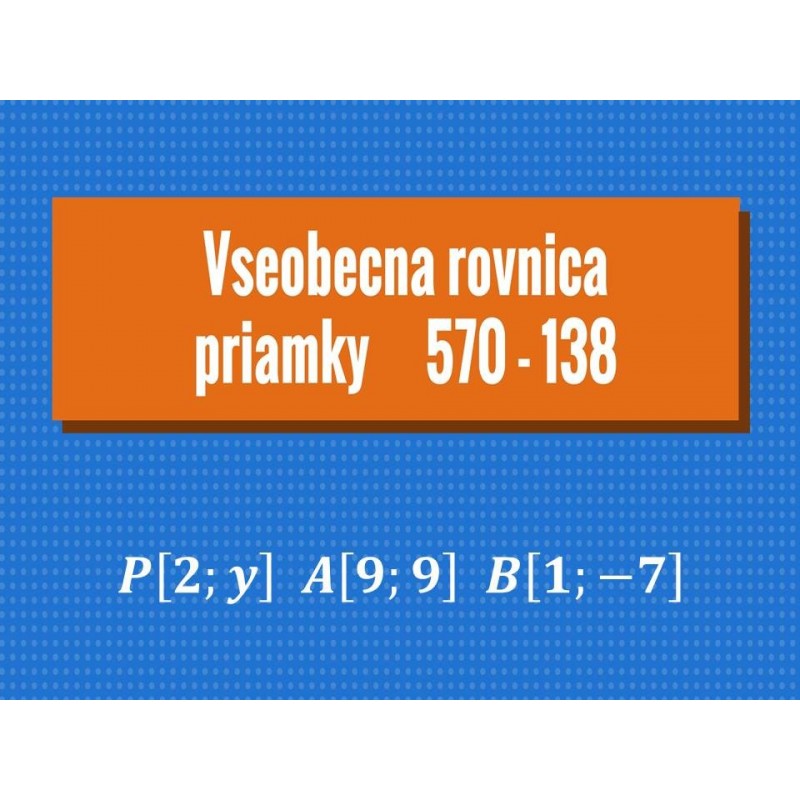 Zadanie : Napíšte všeobecnú rovnicu priamky, ktorá prechádza bodmi A[2;-1], B[5;3].